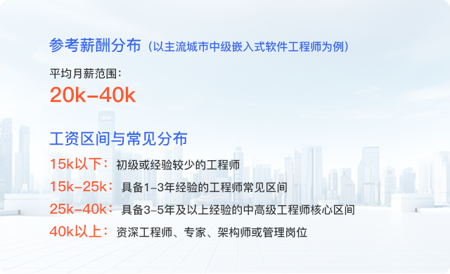 随着智能制造、物联网、智能汽车、工业互联网等领域的快速发展,嵌入式技术作为实现设备智能化、网络化的核心基础,其重要性日益凸显,国内外在芯片设计、操作系统、产业生态等方面的竞争也日趋激烈。鉴于兼具软硬件能力的复合型嵌入式人才供给相对紧张,为吸引和保留核心人才,相关企业不断提升研发人员的薪资与福利待遇。嵌入式工程师岗位,尤其在中高级岗位,招聘起薪普遍较高,在一线及新一线城市,具备一定经验的工程师月薪超过2万元已成为常见标准。
